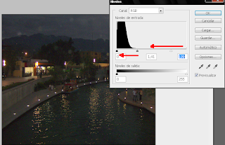 Paso 3: Ahora ajustamos los niveles a nuestro gusto hacia el lado izquierdo si queremos que la imagen se aclare y hacia la derecha si queremos que la imagen se oscuresca.