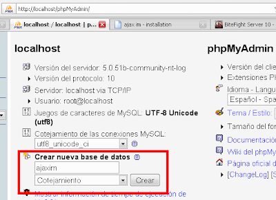 http://localhost/phpMyAdmin/ y creamos una base de datos, yo la nombre como ajaxim