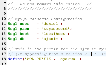 $sql_db = ‘ajaxim’;// Nombre de la BD.