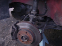 Después de desayunar busque una cruceta, las torres y el lagarto para hacerla de llantero y quitarle la llanta al carro para ir a cambiarla por una nueva, bueno de segunda porque al ritmo que las gasta no conviene comprarle llantas nuevas hasta que le compre los amortiguadores que valen 300 pesos c/u.